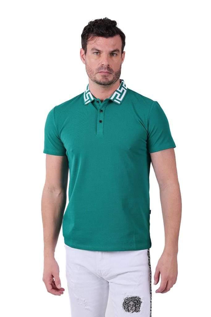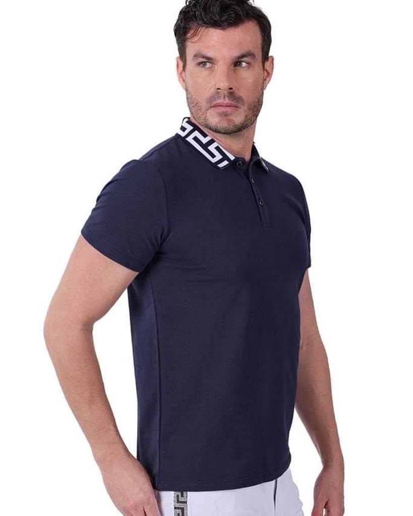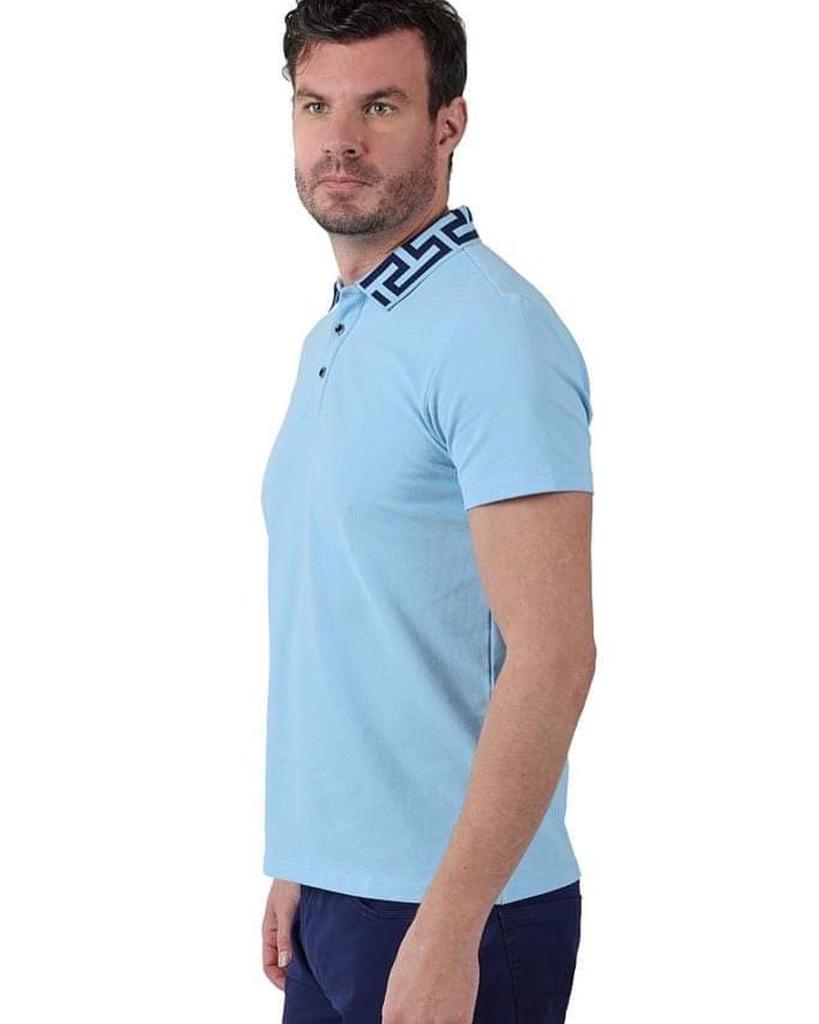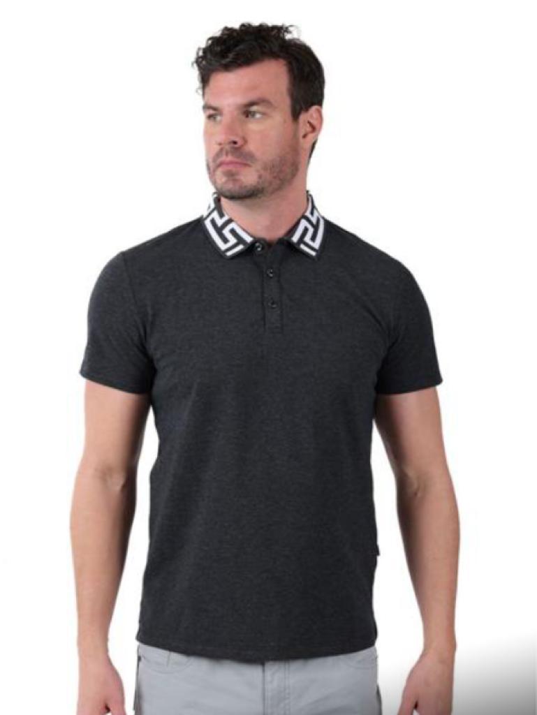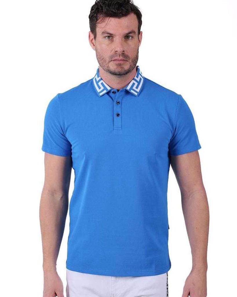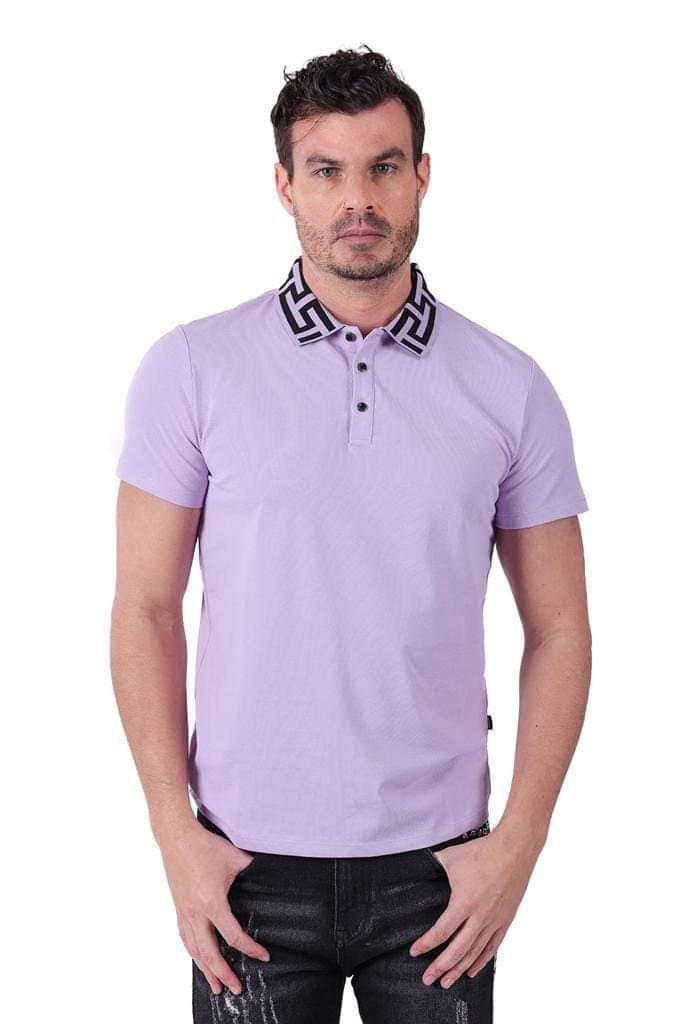 Barabas men's Greek key printed pattern in solid color short-sleeve polo shirt has an original design with a contrasting collar. Barabas men polo shirts are an ode to both the traditional and the contemporary nature of the House. Symbols that have defined different eras appear as recognizable logos and through subtle hints to the past. This cotton polo shirt is decorated by the people of Ancient Greece, Meander (or Meandros). This polo shirt has high-quality material with three-button closure.