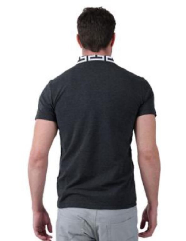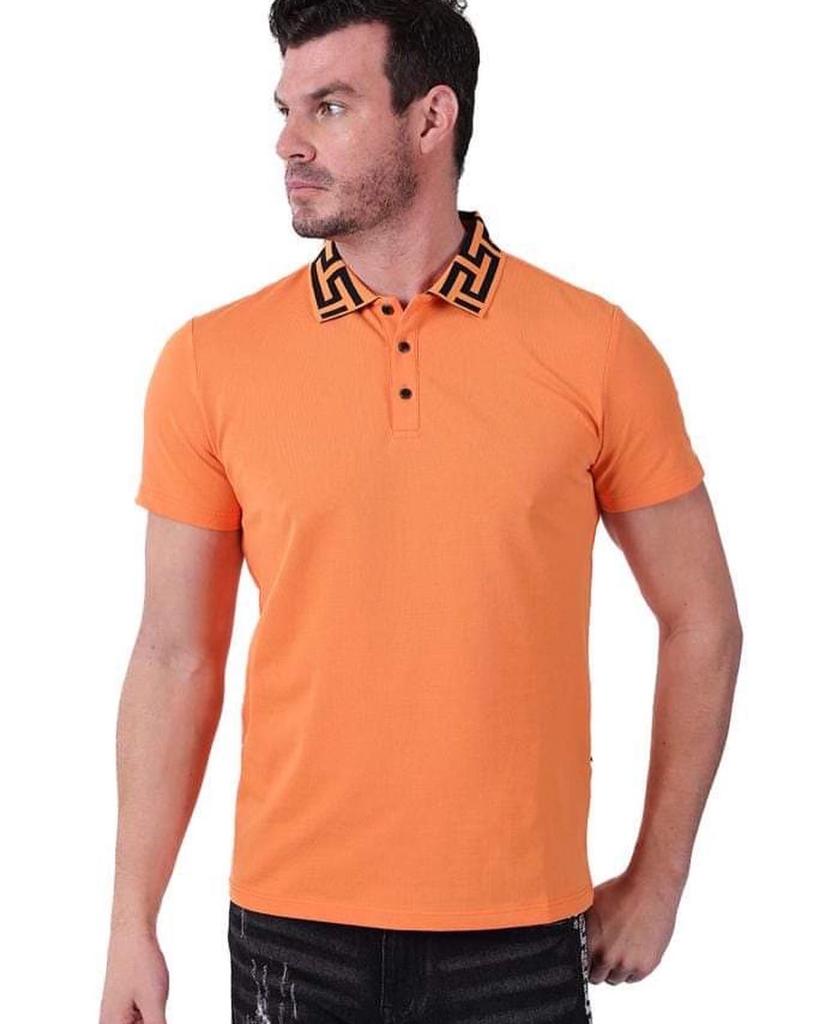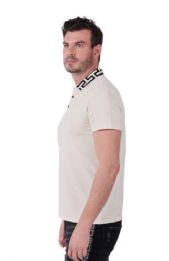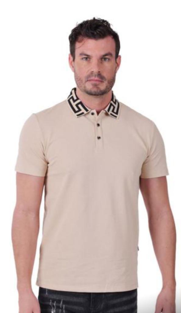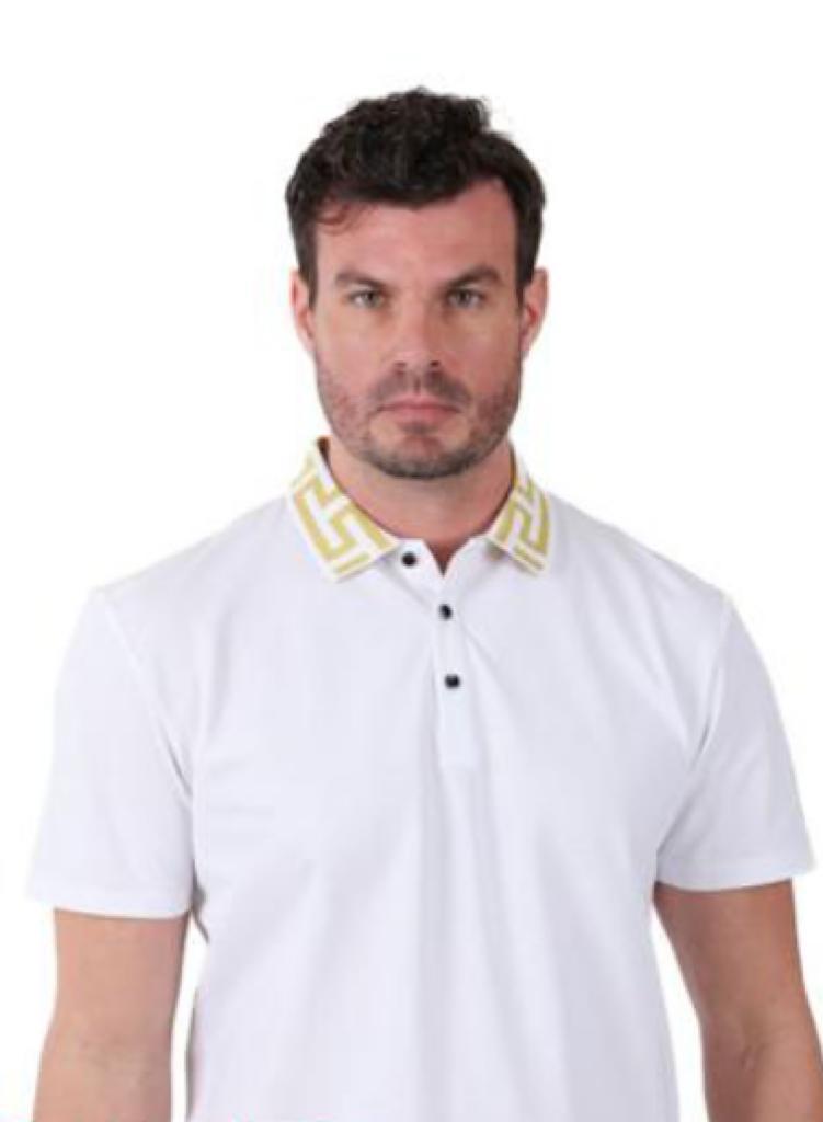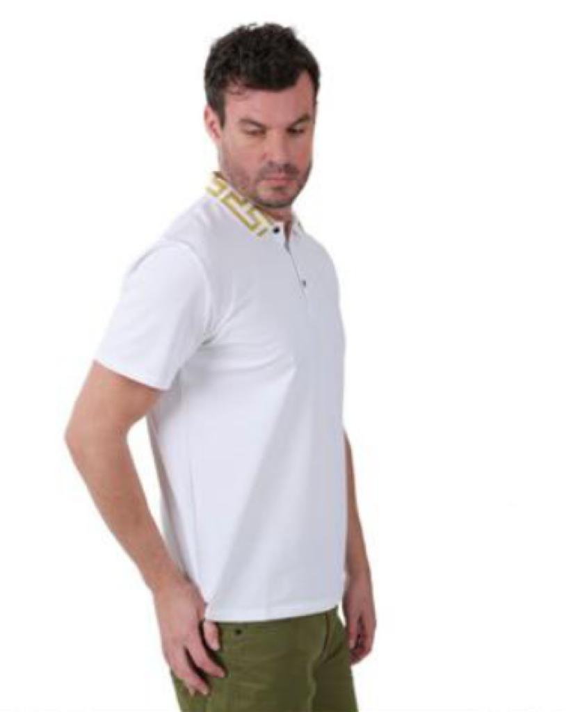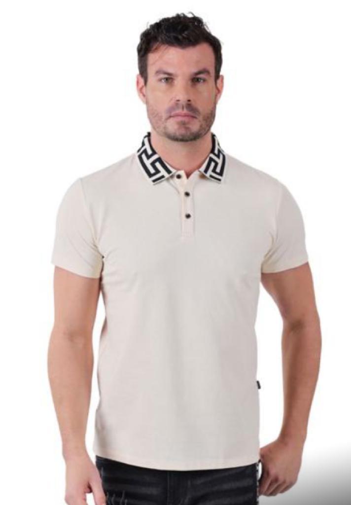 Barabas men's Greek key printed pattern in solid color short-sleeve polo shirt has an original design with a contrasting collar. Barabas men polo shirts are an ode to both the traditional and the contemporary nature of the House. Symbols that have defined different eras appear as recognizable logos and through subtle hints to the past. This cotton polo shirt is decorated by the people of Ancient Greece, Meander (or Meandros). This polo shirt has high-quality material with three-button closure.